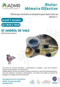 Atelier mémoire Olfactive – Mardi 7 octobre – de 14h30 à16h30