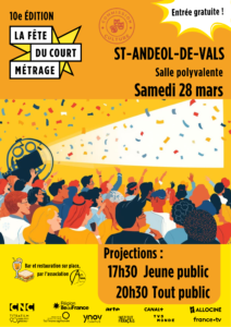Samedi 28 mars, la salle polyvalente de Saint-Andéol-de-Vals se transforme en cinéma éphémère pour la 10ᵉ édition de la Fête du Court Métrage. Une soirée gratuite et conviviale, organisée par la commission Culture, pour célébrer le 7ᵉ art sous toutes ses formes.