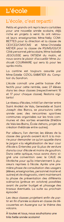 Les dernières actualités de l’école publique de St Andéol de Vals :
